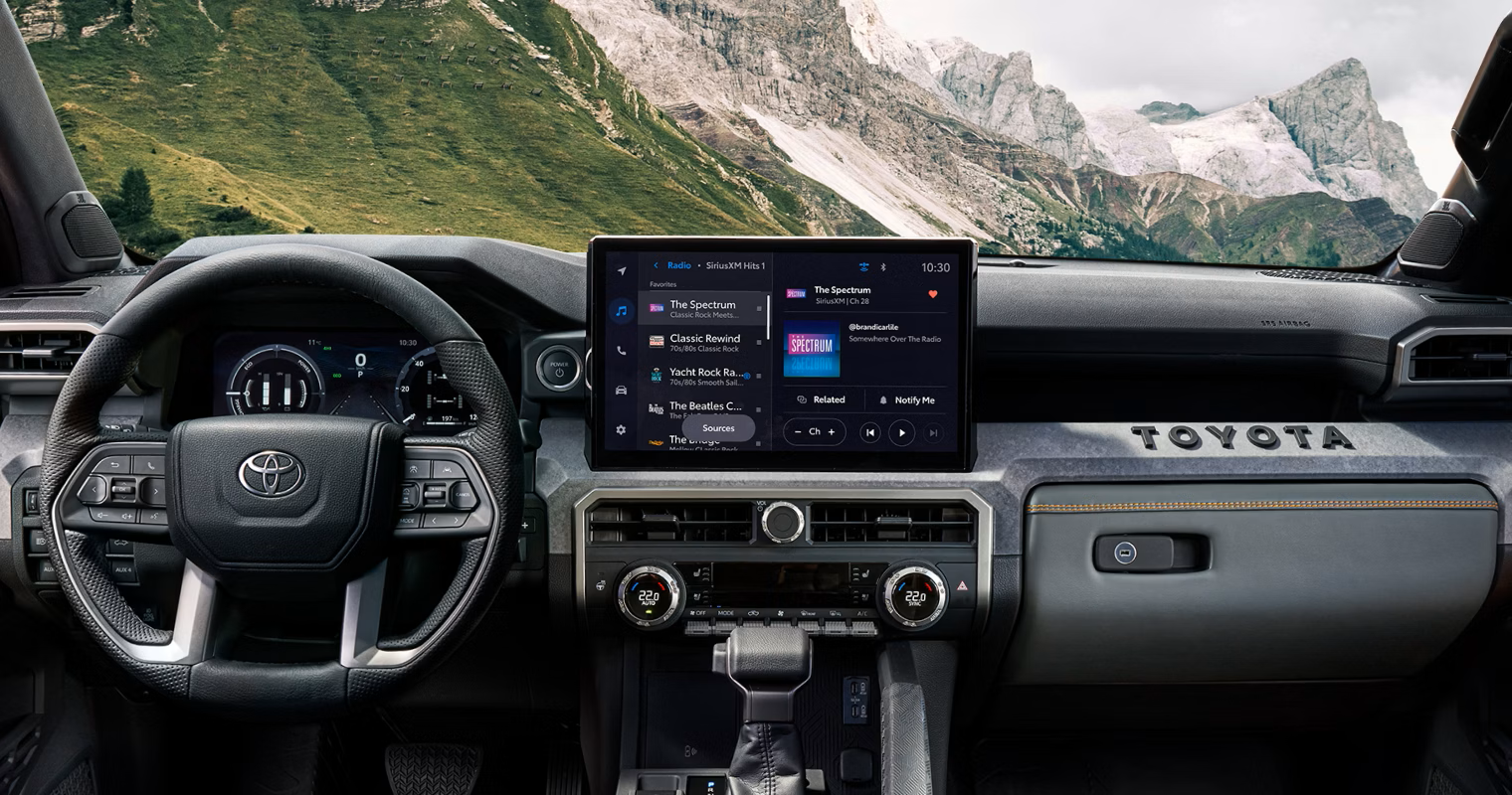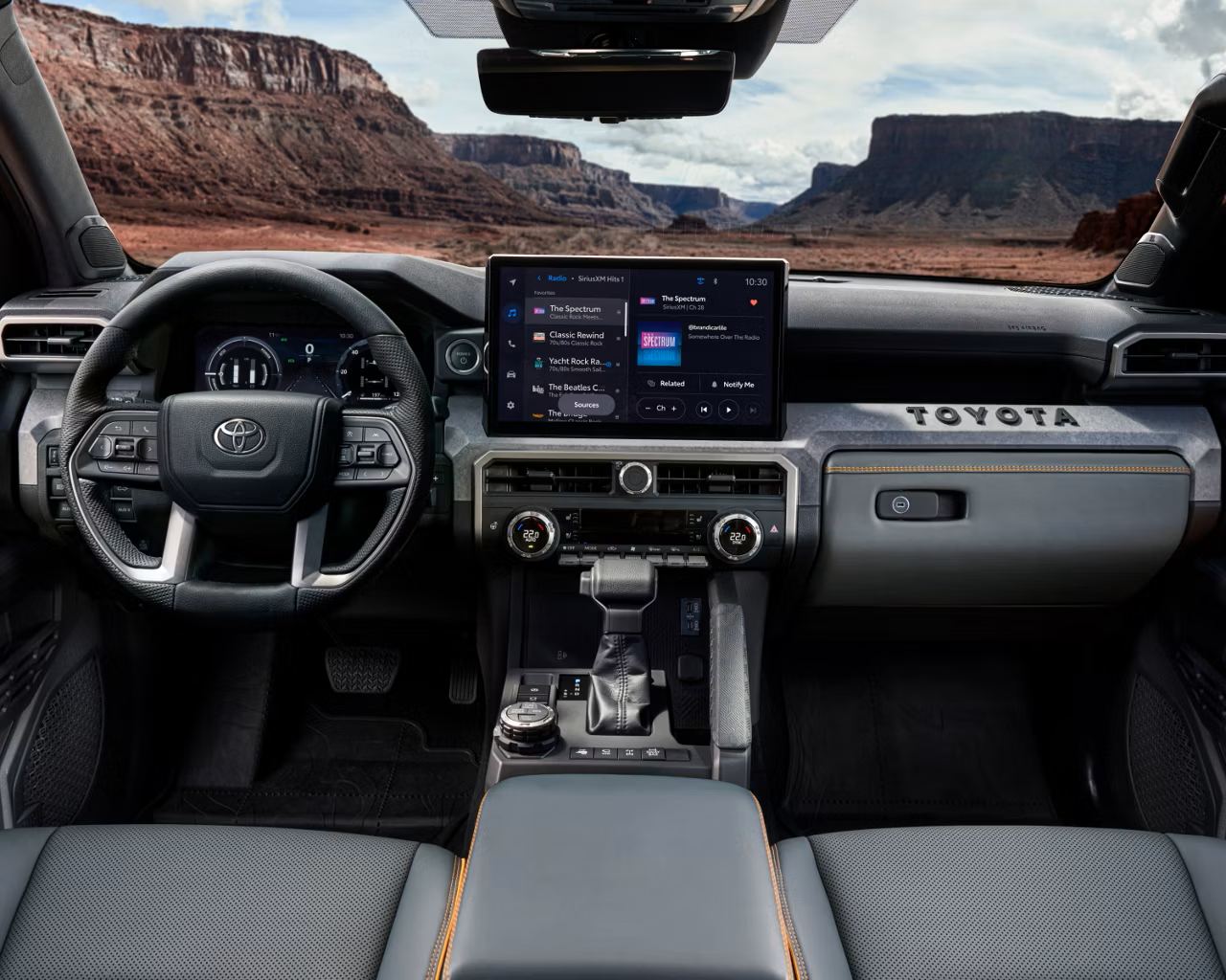 The 2026 Toyota Tacoma keeps you connected and entertained wherever the road—or trail—takes you. Standard Toyota Multimedia features wireless Apple CarPlay® and Android Auto™, along with Connected Services like Safety Connect, Service Connect, and Remote Connect, with available Drive Connect for added convenience. Enjoy crystal-clear sound through the available 10-speaker JBL® Premium Audio System and portable JBL® Flex speaker. Tacoma also offers large 8” or available 14” touchscreens, steering-wheel audio controls, Bluetooth®, and standard wireless charging on select trims, making every journey smarter and more enjoyable.