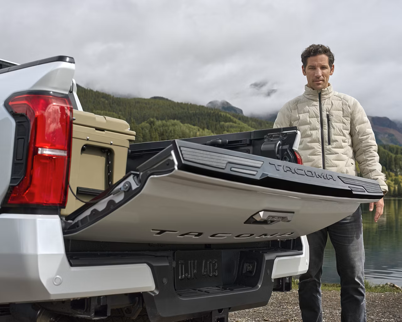 The 2026 Toyota Tacoma combines rugged capability with stylish, versatile design. Its bold exterior can be customized with 18” alloy wheels, TRD Sport or Off-Road packages, bed scene lighting, and a color-keyed hood scoop with sport-tuned suspension on TRD Sport models. Inside, comfort meets utility with features like an 8-way power driver’s seat, heated steering wheel, dual-zone climate control, and customizable MOLLE panel storage. Hybrid models offer a 2400-watt power inverter, and all Tacomas can include an available up/down power tailgate for easy access to the bed. Adventure-ready, yet refined for everyday driving.